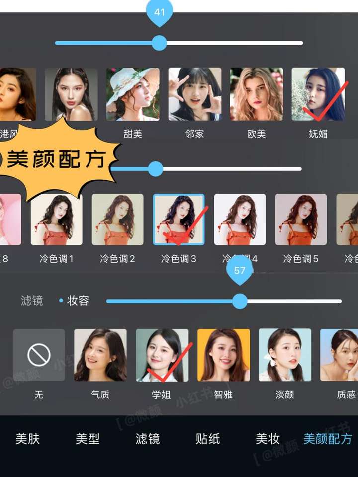 ● 妆容随心换:这个功能有点意思。它不是死板地给你加一层滤镜,而是可以根据你的发型和穿搭来选妆容,比如你今天穿得比较休闲,就选个淡一点的“伪素颜”妆;要是晚上约会,可以稍微加深一点口红和气色。